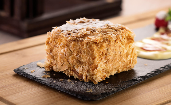 Наполеон Категории продуктовДесерты Торт собственного изготовления. Нежнейшие коржи слоеного теста, пропитанные заварным кремом. 150 гр/180 Р